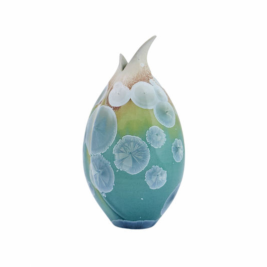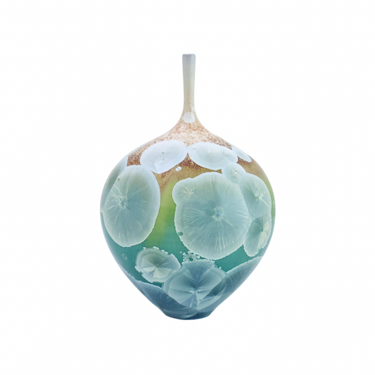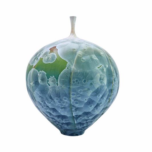 Lee’s contemporary quilt work explores color, movement, and layered patterns, transforming fabric into dynamic compositions that blur the line between fine art and traditional craft. Wright’s ceramics showcase the luminous beauty of crystalline glazes, with each piece capturing organic, flowing surfaces created through the unpredictability of the firing process.