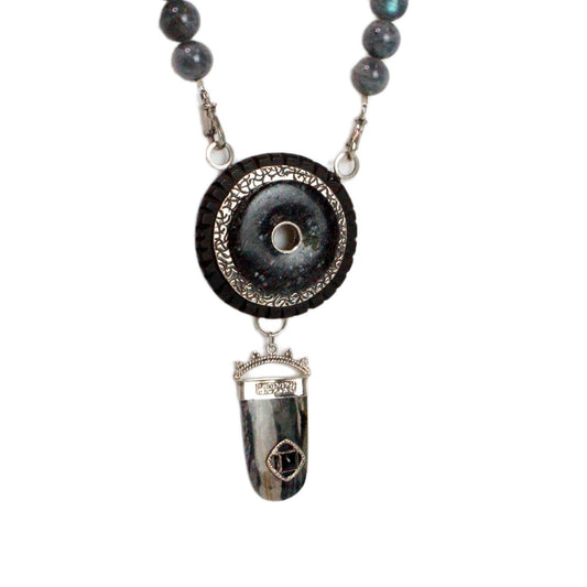 I like my work to be viewed as wearable art and give the pieces dimension with texturing and positive and negative space. Color is very important to many of my works and so I carefully choose the stones that may go into each piece so that they enhance each other and many times the design is centered on the stones I choose. I also like to challenge the idea of preciousness by using materials not usually seen in jewelry such as glass, rusted metal, beach stones and found objects. When you take things out of context it changes people’s perception of such items.