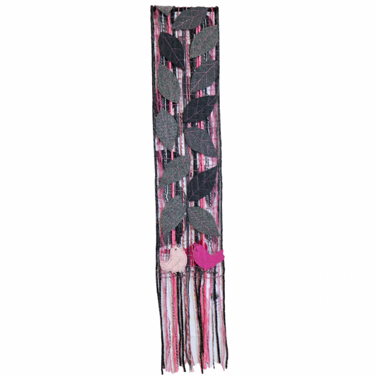 Scarf - Gray Leaves/Pink Birds