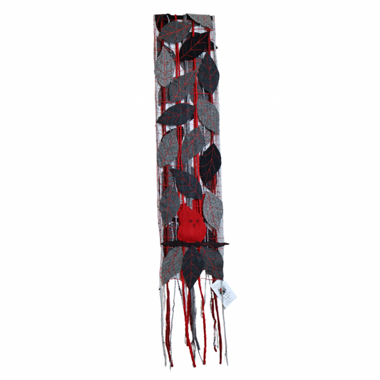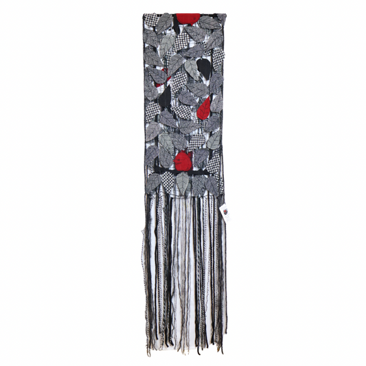 Scarf. Black & Gray with Red Birds