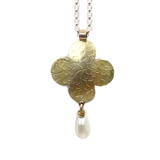Quatrefoil Pillow Reversible Pendant Pearl Drop