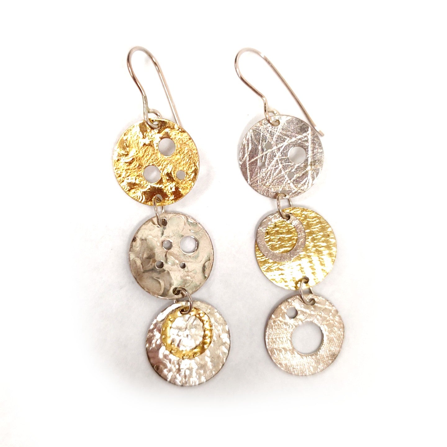 Stunning handcrafted sterling silver and 18k gold earrings by Exhibiting Artists in Jewelry, Ann and Peter Hanson.