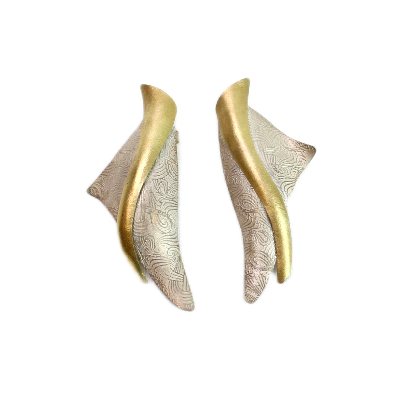 Stunning handcrafted 18k gold and sterling silver bi-metal earrings by master metalsmith and Exhibiting Artist in Jewelry, Betty Helen Longhi