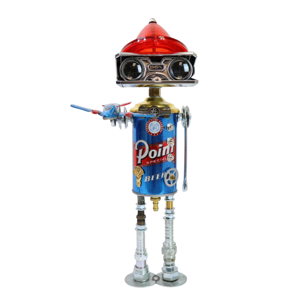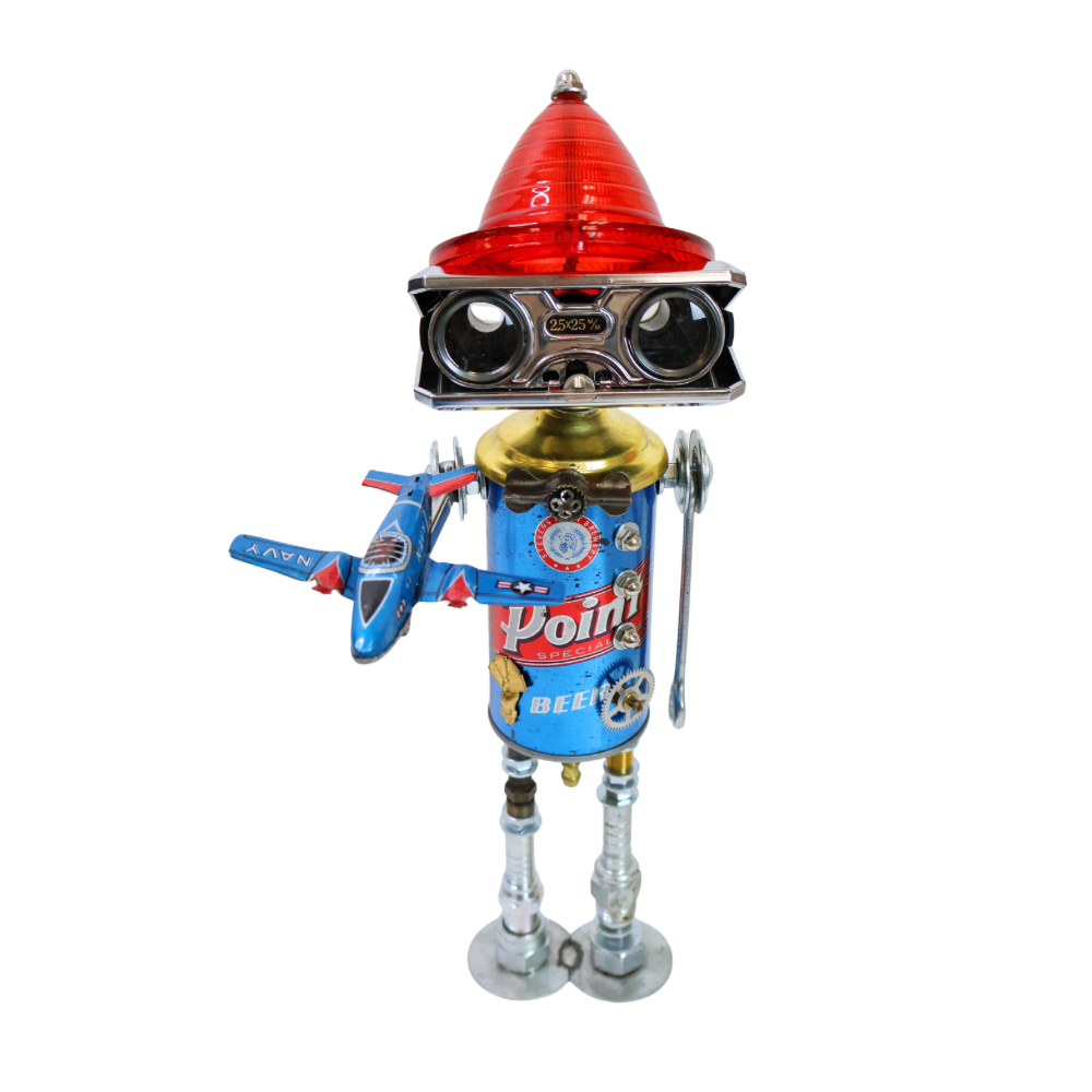 Fobots (Found Object Robots) are the creations of Raleigh, NC artist Amy Flynn. Combing flea markets, auctions, antique malls and the internet for cool, vintage junk, Amy then solders and bolts her finds together to create one-of-a-kind robots. They are not functional, they are not toys, and they will not go on a rampage while you sleep.