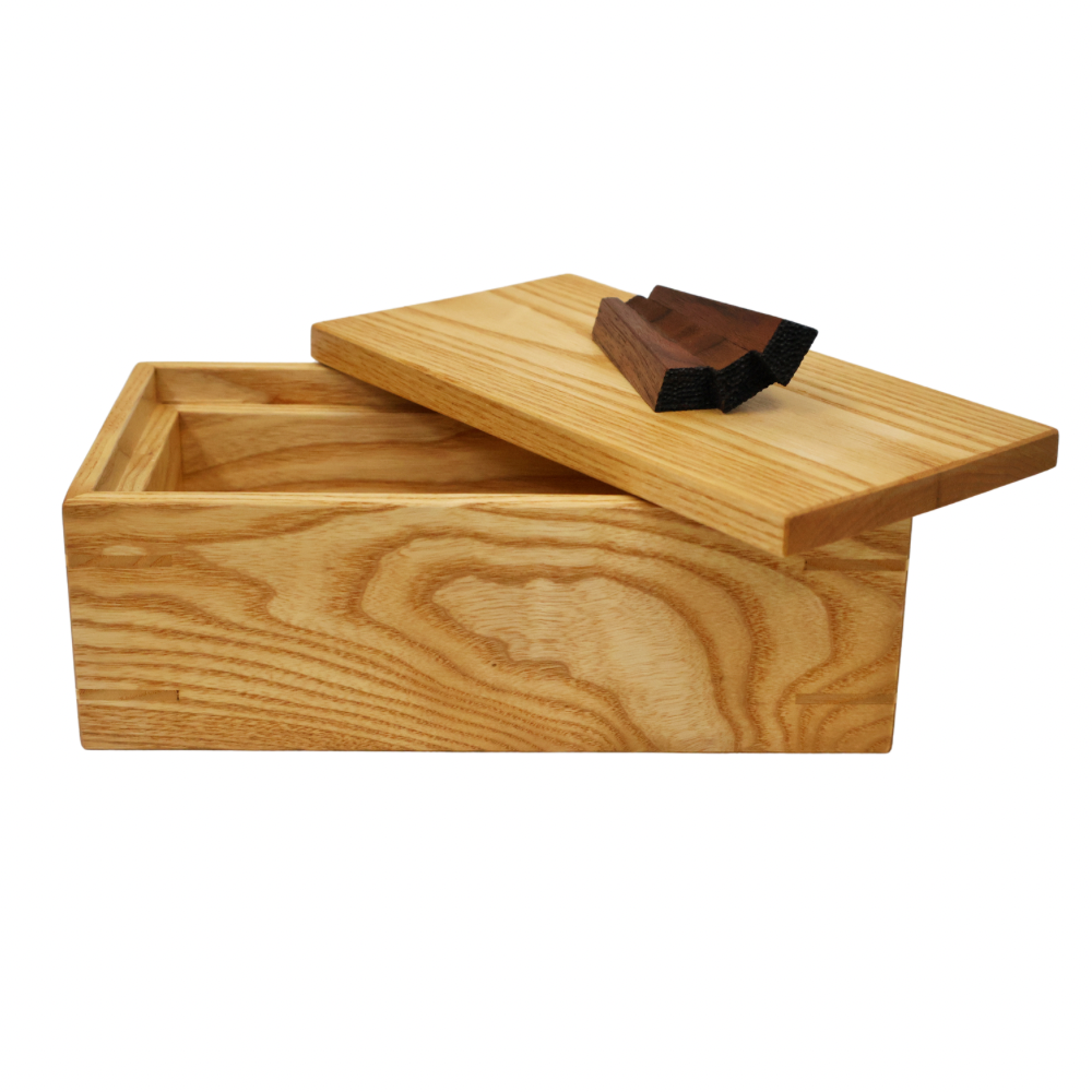 Ash Box with coopered Walnut top handcrafted by Exhibiting Artist in Wood, Robb Helmkamp.