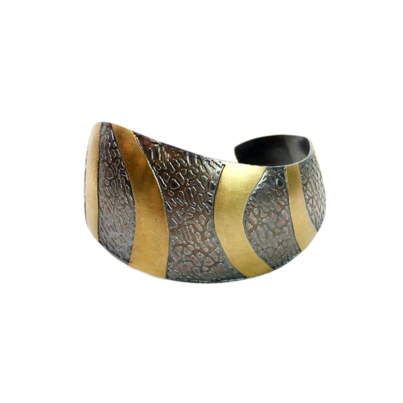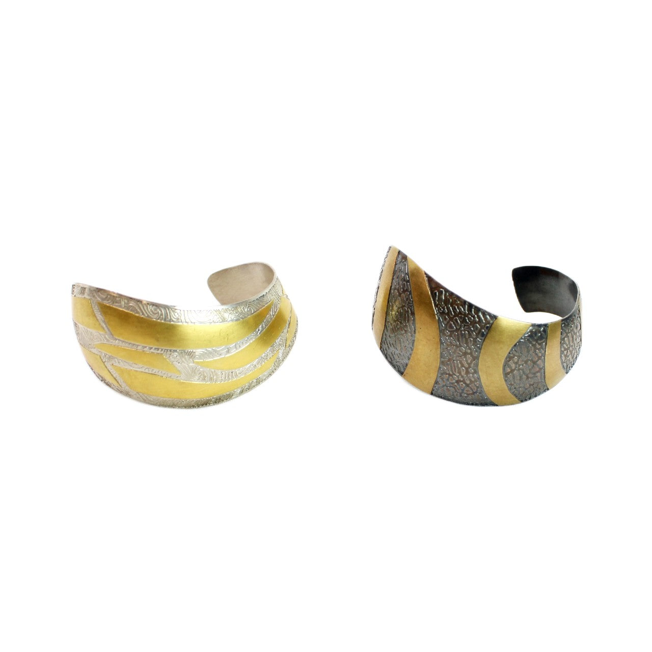 Stunning handcrafted 18k gold and sterling silver bi-metal cuffs by master metalsmith and Exhibiting Artist in Jewelry, Betty Helen Longhi