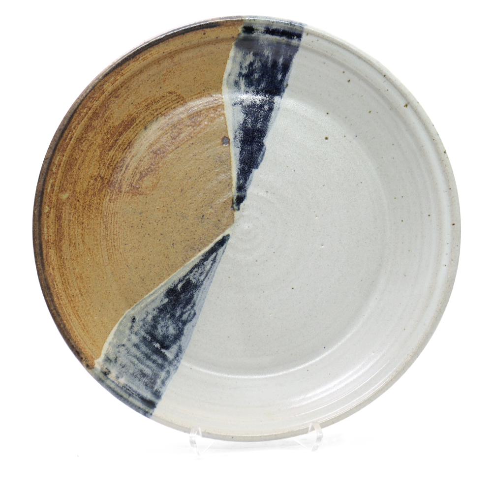 Clyde Gobble platter. Blue, white & natural. 14" across