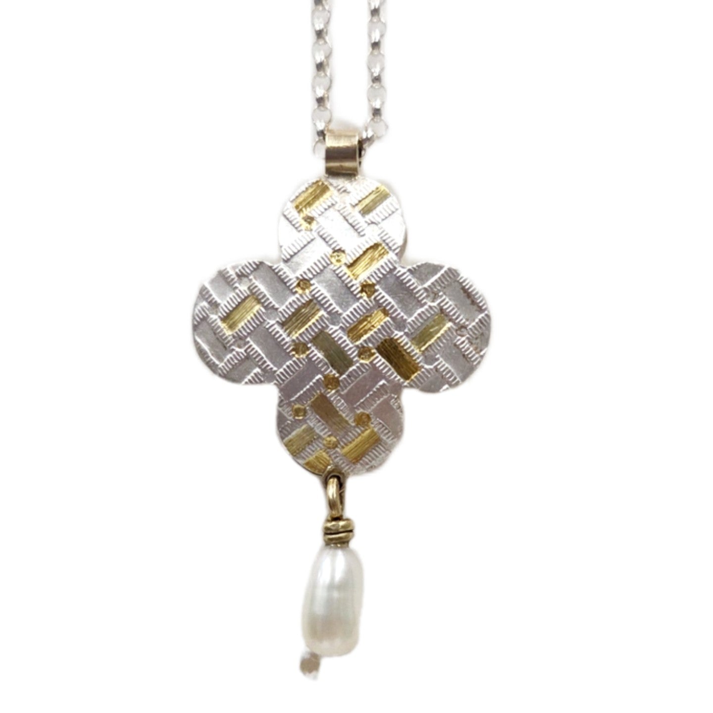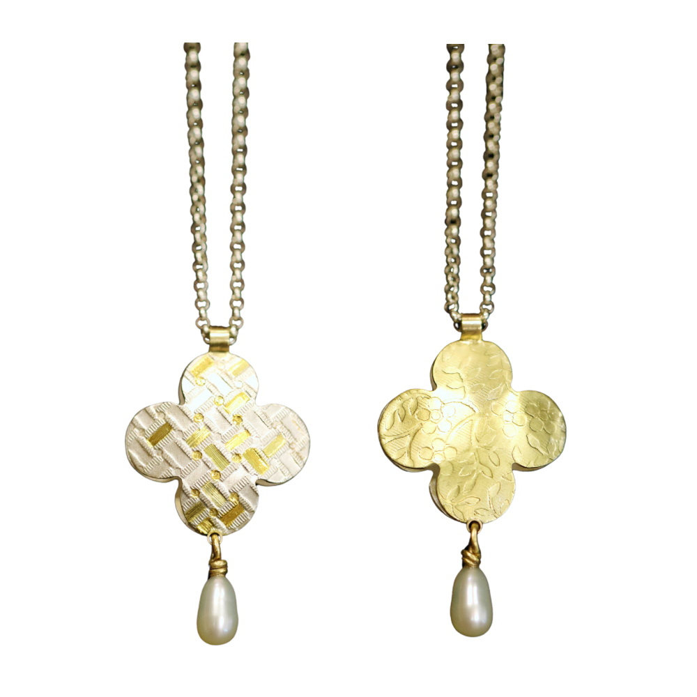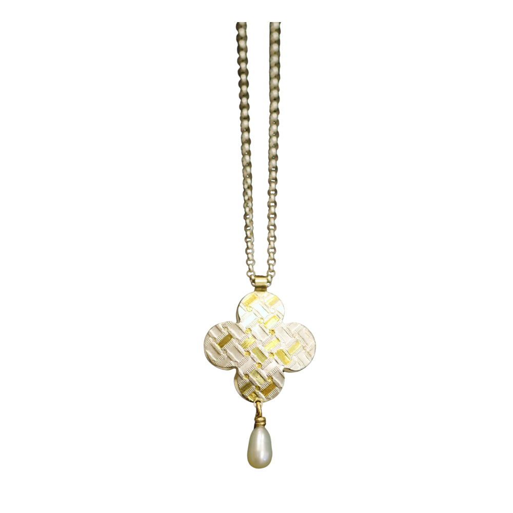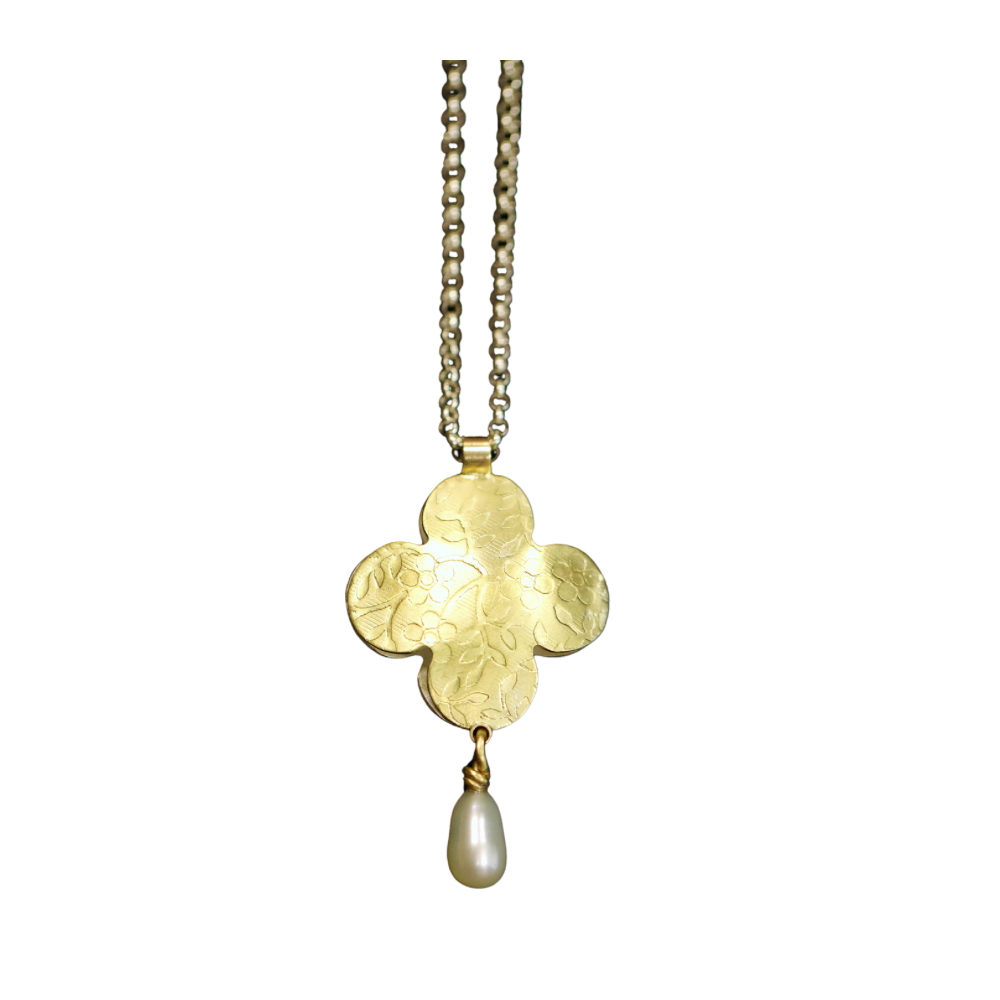 Quatrefoil Pillow Reversible Pendant Pearl Drop