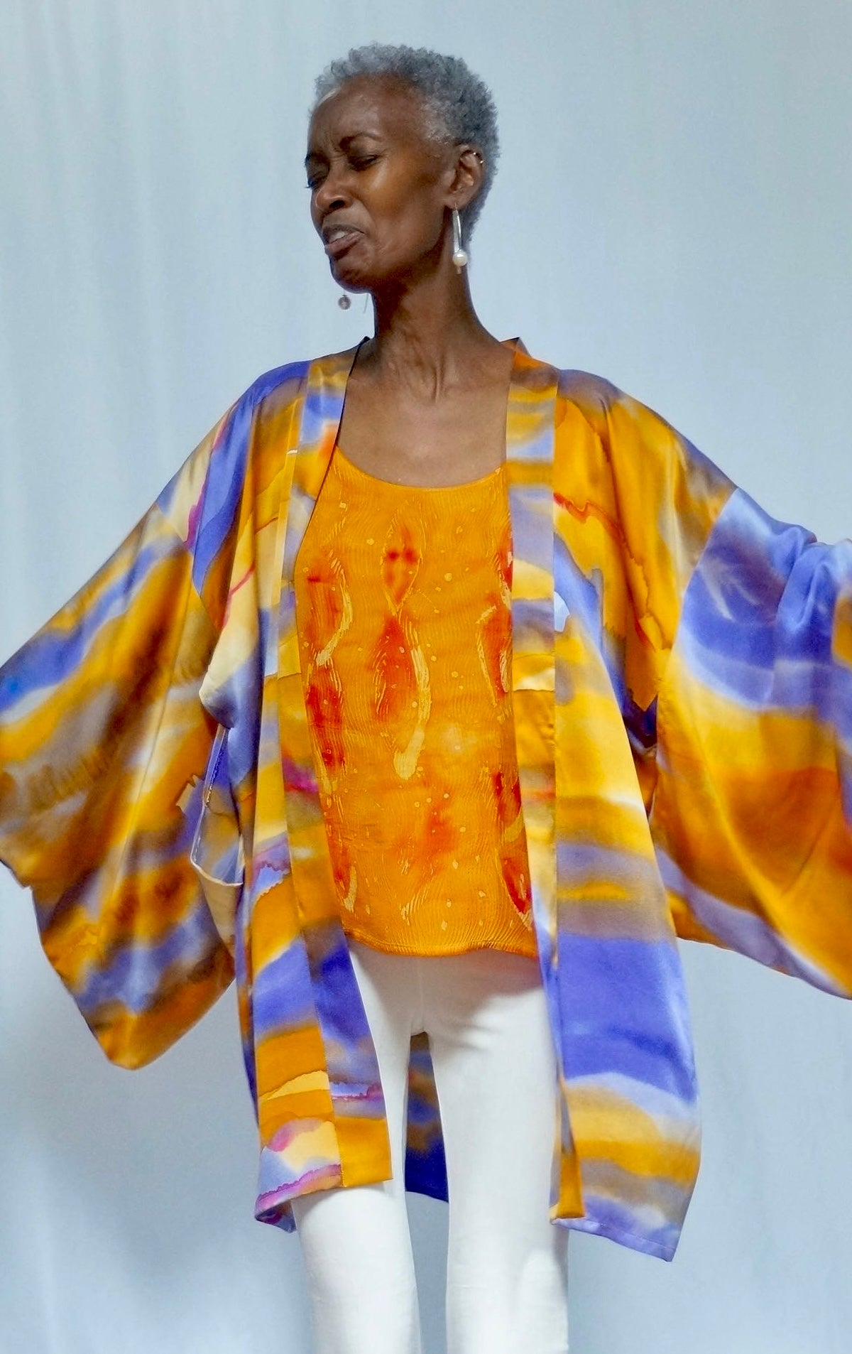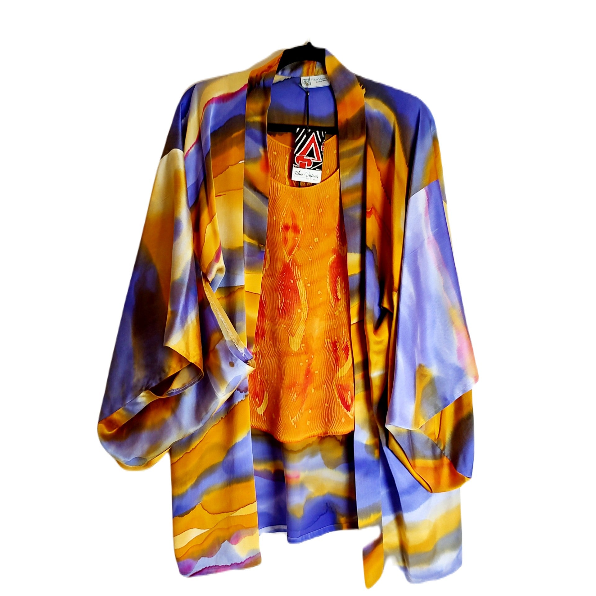 Silk Charmeuse Kimono with tanktop handcrafted by Exhibiting Artist in Fiber, Joanna White.