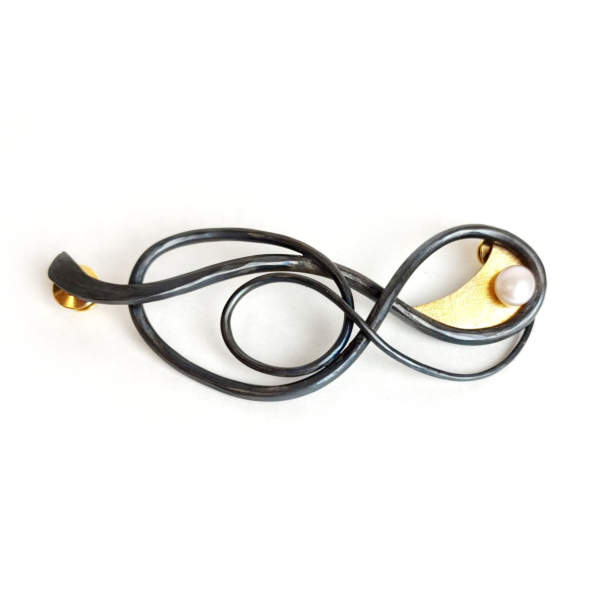 Bimetal Pearl Wave Pin/Pendant handcrafted by Exhibiting Artist in Jewelry, Betty Helen Longhi.