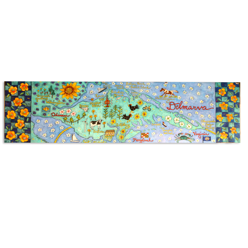 Handpainted Delmarva floorcloth. 24"x 83"