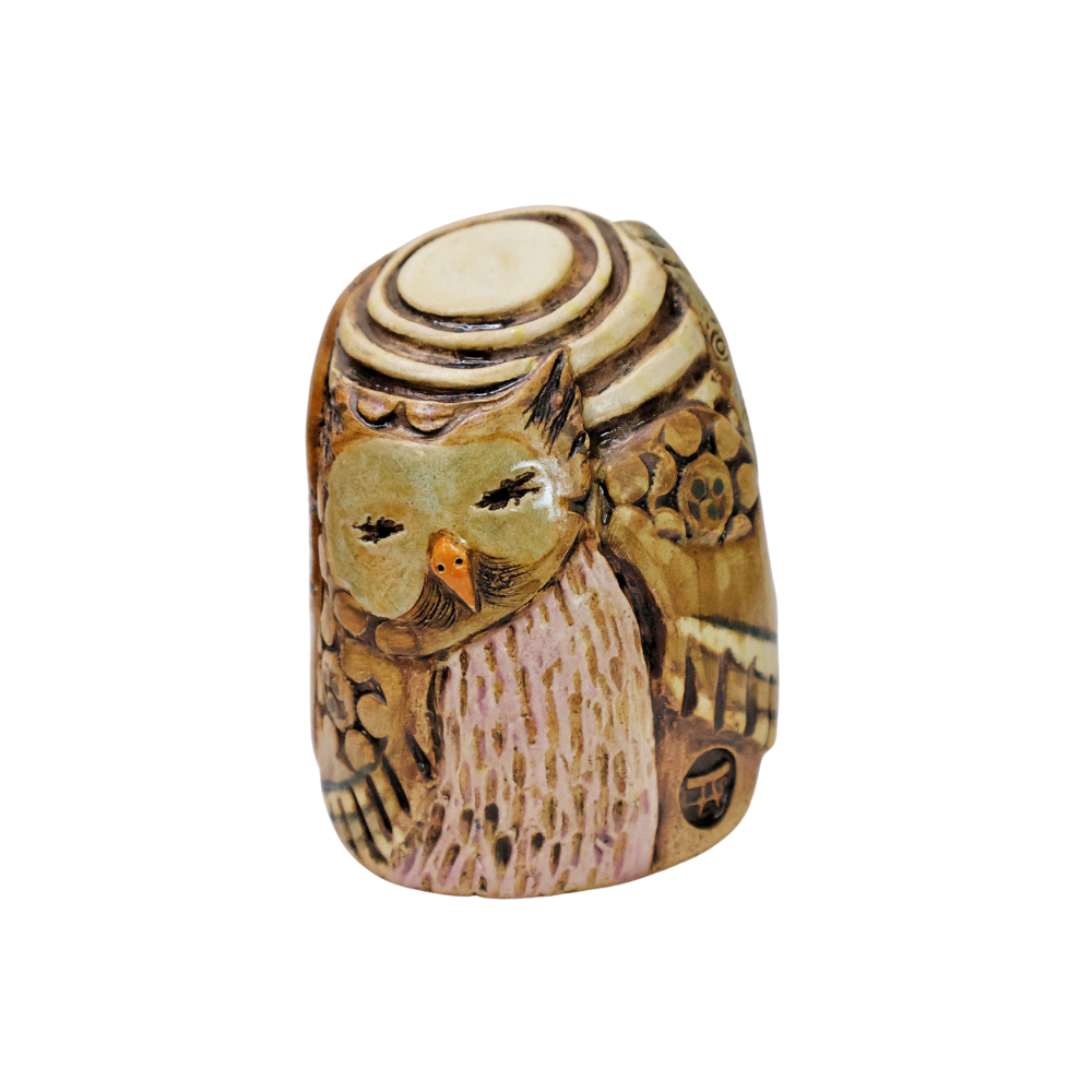 Clay sculpture featuring multiple owls by Terry Ostovar.