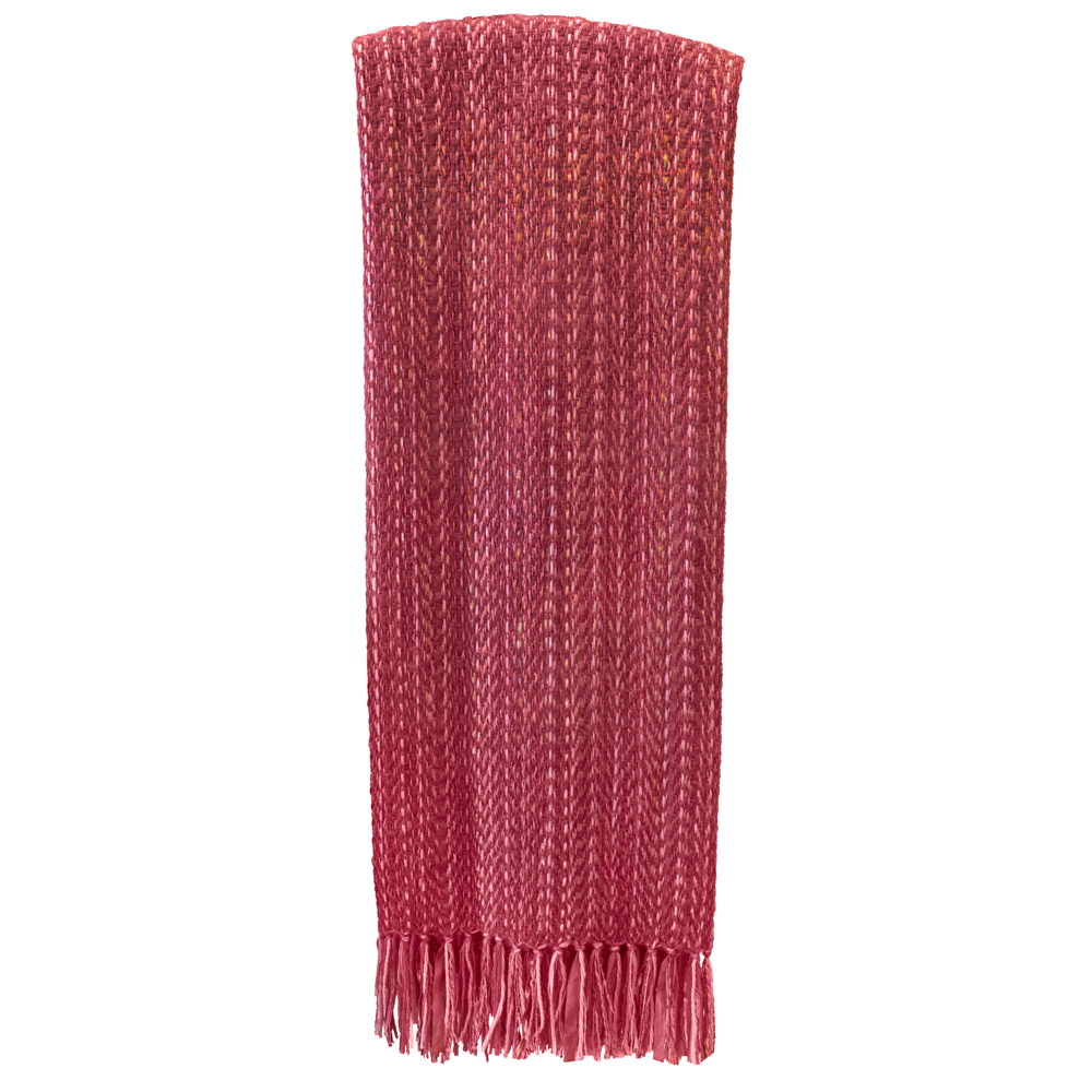 Handwoven Mohair Throw with ribbon in coral colors handcrafted by Exhibiting Artist in Fiber, Carolyn Glazener