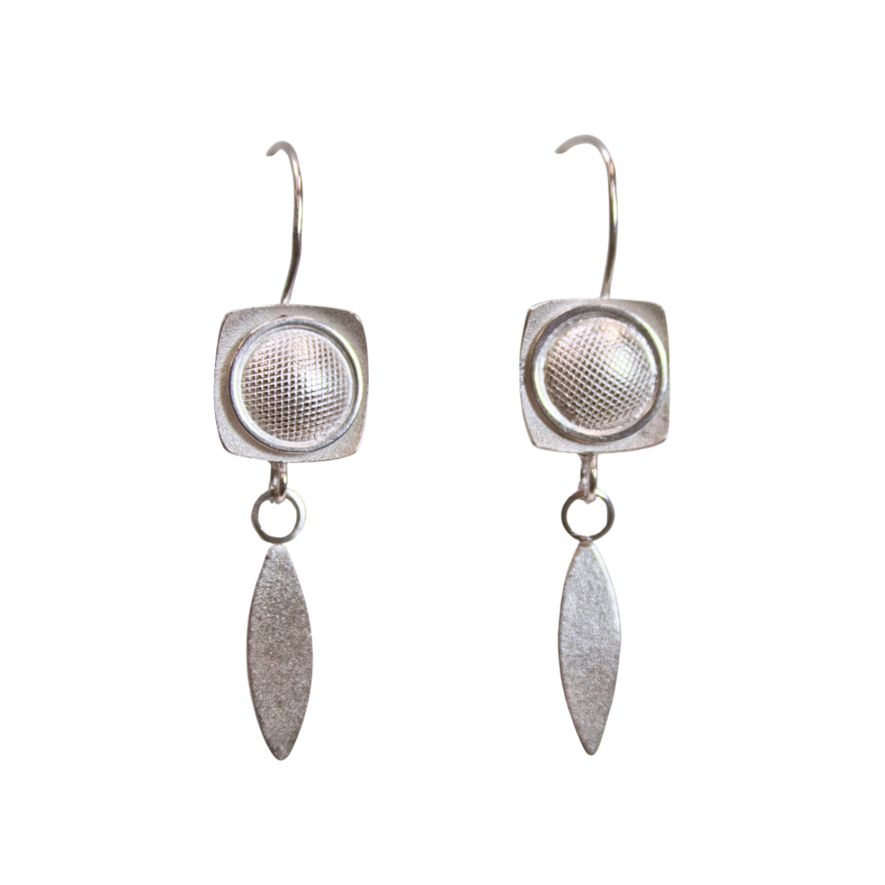 Sterling Silver "Moondot" earrings with oblong dangle. LMB #52