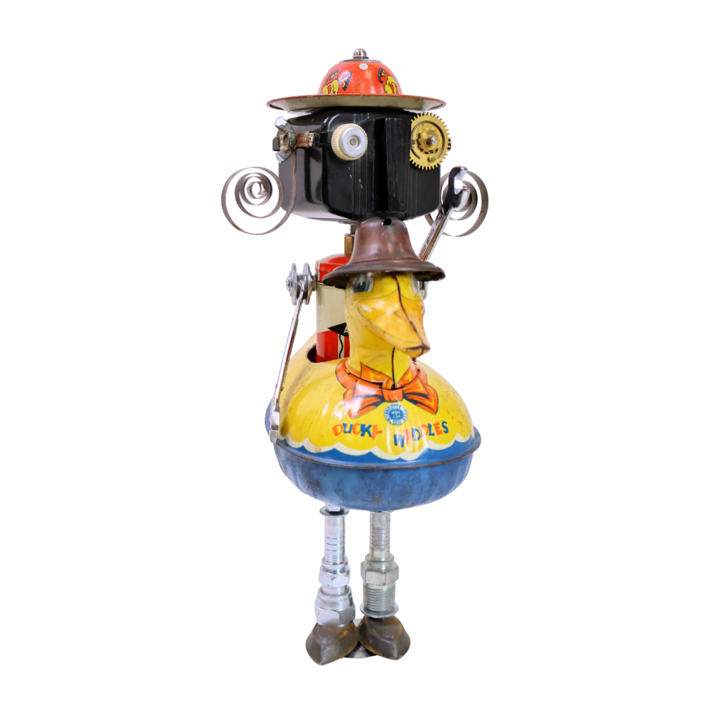 "Happy Go Ducky." Fobot by mixed media exhibiting artist, Amy Flynn.