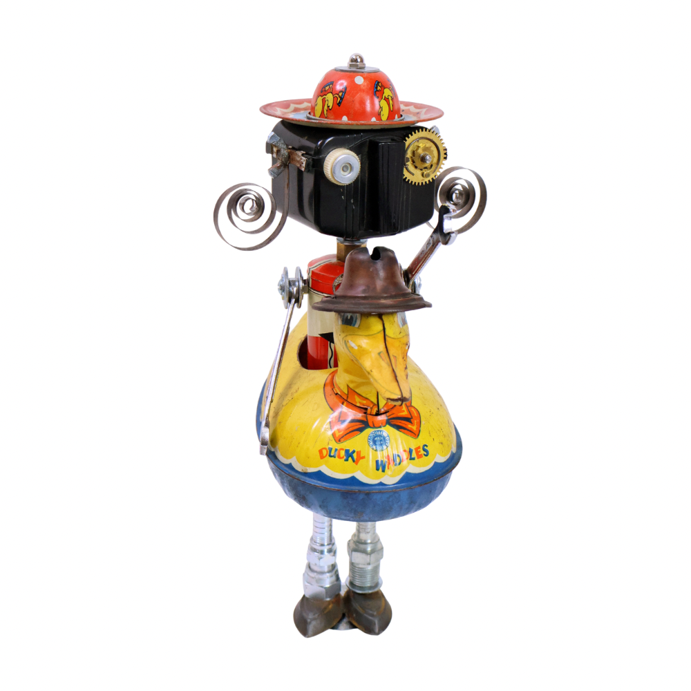 Fobots (Found Object Robots) are the creations of Raleigh, NC artist Amy Flynn. Combing flea markets, auctions, antique malls and the internet for cool, vintage junk, Amy then solders and bolts her finds together to create one-of-a-kind robots. They are not functional, they are not toys, and they will not go on a rampage while you sleep.
