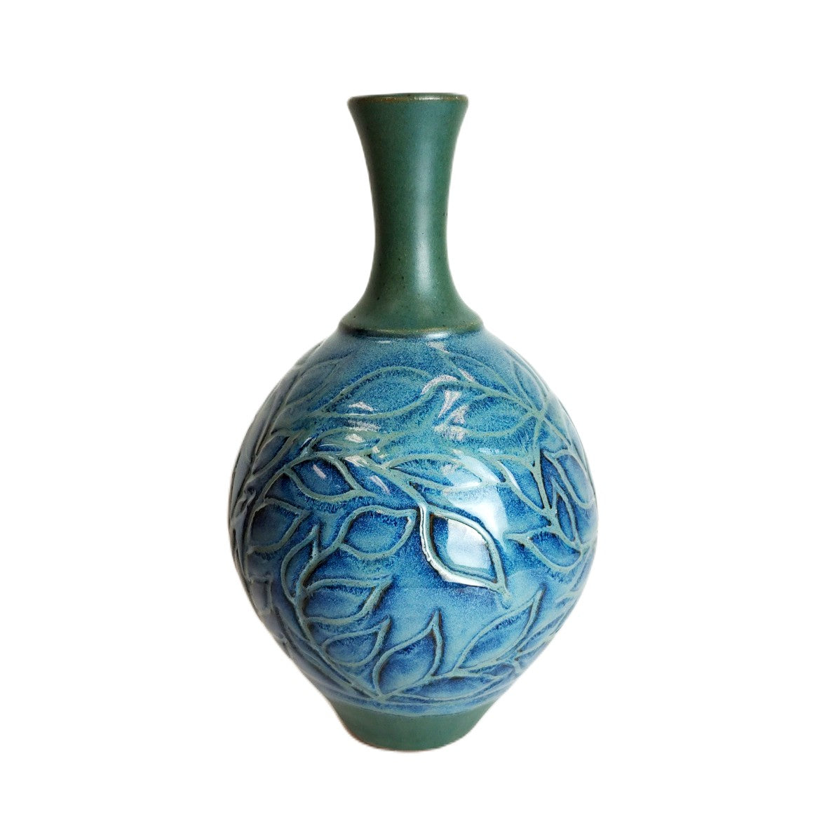Patterned Blue Vase with Neck handcrafted by Exhibiting Artist in Clay, Bob Meier