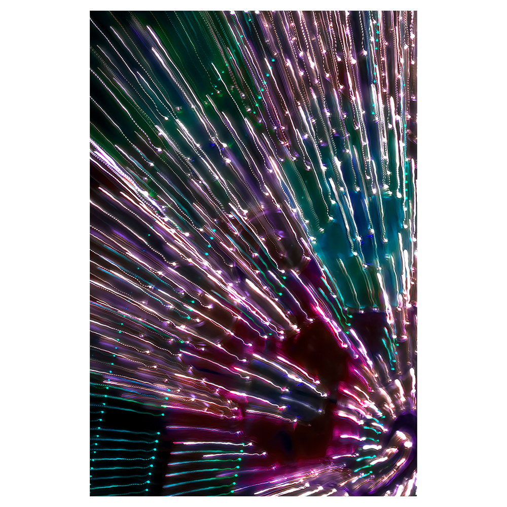 Limited edition long exposure zoom on nighttime light display. 12" x 18" metal print with insert frame so the piece "floats" on the wall.