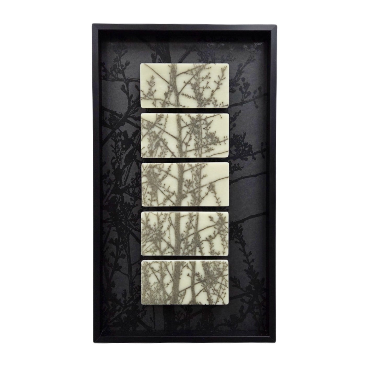 "Plum Tree Buds". Powder Print. Framed/Printed mat-segmented