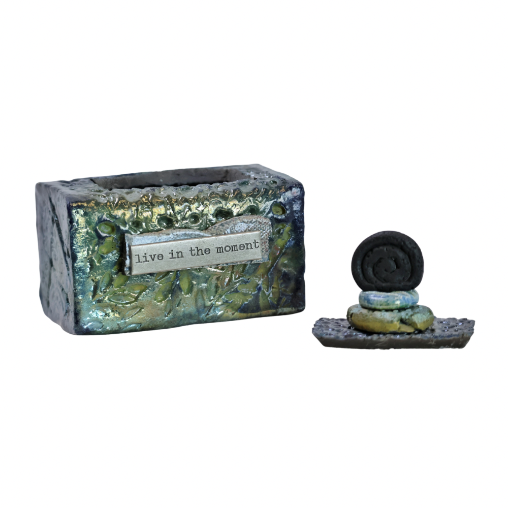 "Live in the moment" Prayer Box by exhibiting artist Courtney Tomchik.