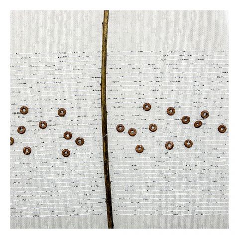 “I walk. It calms my mind. I know just what to do next. My feet carry me forward. Mostly it’s routine, tranquil, and quiet. Occasionally I flush out a bird, a deer or two. Sometimes I come around a bend in the land and am delighted to see a dried pod, a tree full of galls, or a vine that is particularly beautiful that day. I am in this place of meditation, not quite lost in a brown study. This is how my weaving is to me. It too is quiet and methodical. One thread after another carry me forward. On a good day, I am surprised by the time that has slipped away as I witness where I have been and where I am going, traveling by foot or on the space in front of me at my loom. In viewing my work, my hope is that, for at least a moment, you become lost in the discovery of the minute, the quiet of repetition, and the beauty of nature and pattern.”