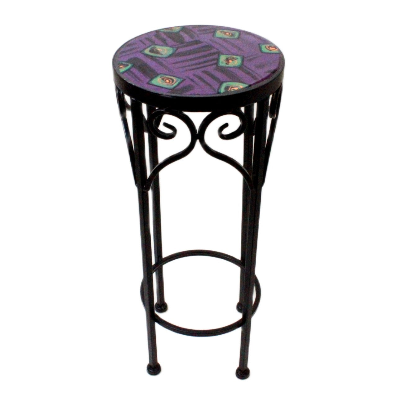 Small metal table or plant stand with purple ceramic top by Exhibiting Artist in Clay, Barbara Mann.