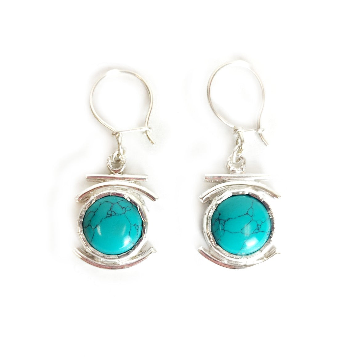Sterling silver on Continuum sterling ear wires, Chinese Spider Vein turquoise - 12mm.