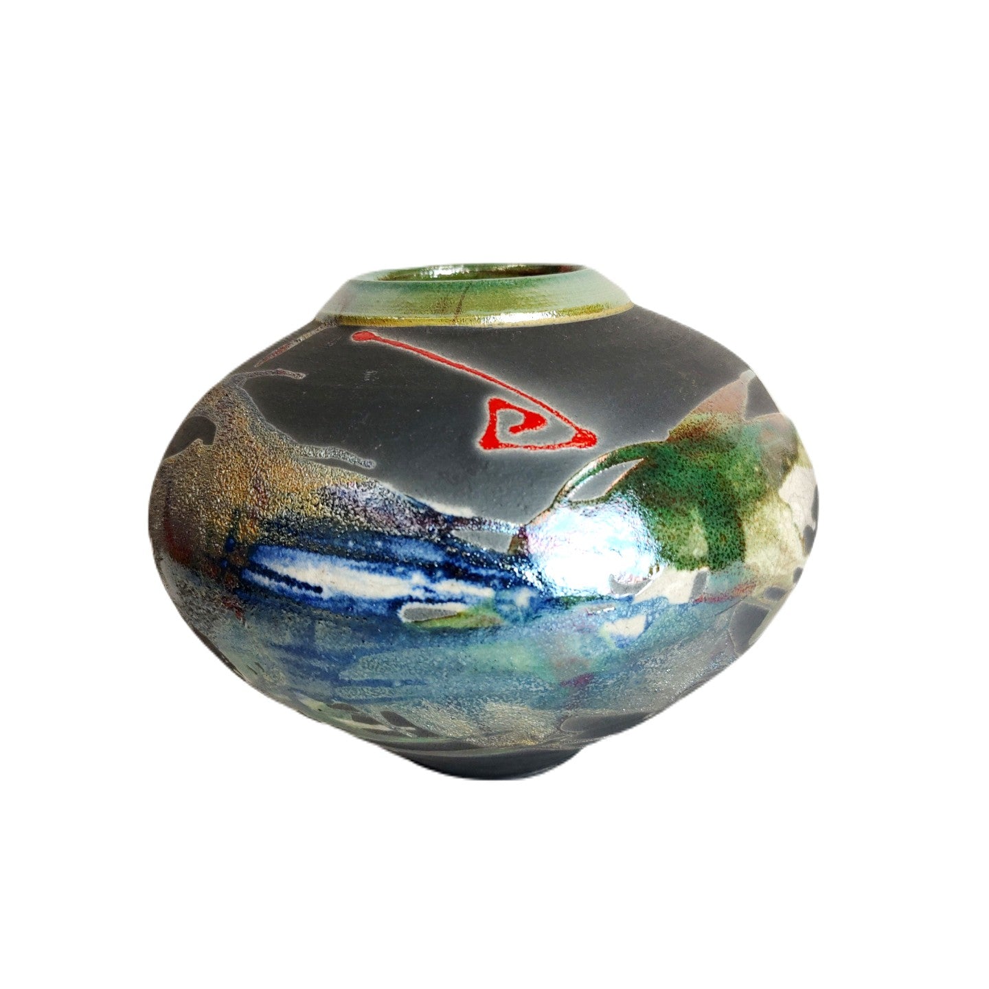 Raku Vase - Splash handcrafted by Exhibiting Artist in Clay, Harry Hearne