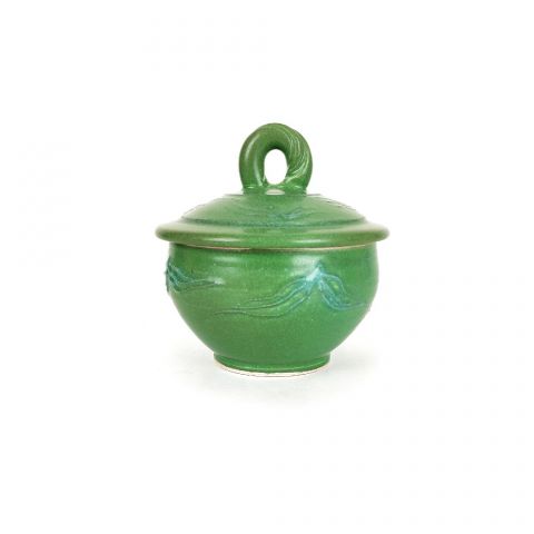Gorgeous handcrafted ceramic green-covered dish by Exhibiting Artist in Clay, Doug Dacey.