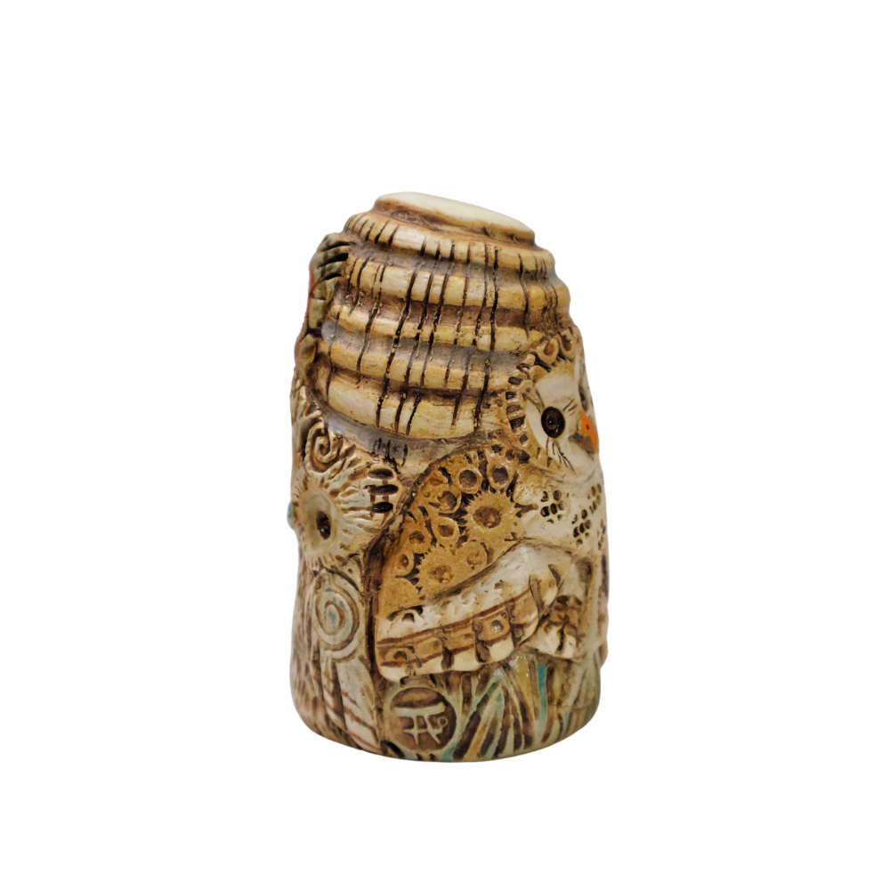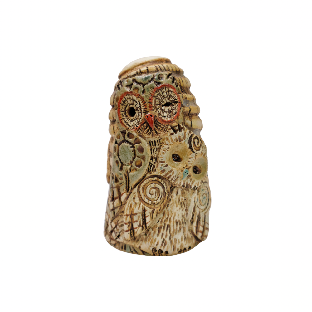 Clay sculpture featuring multiple owls by Terry Ostovar.