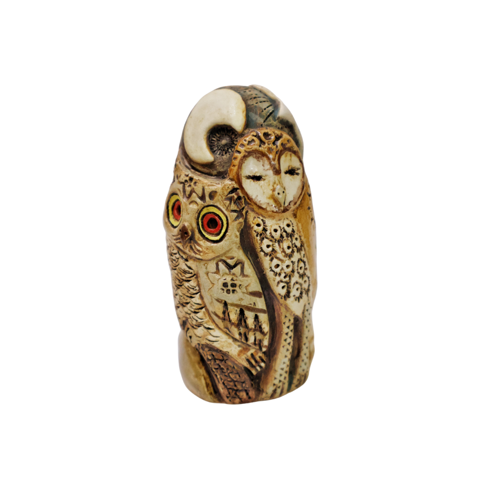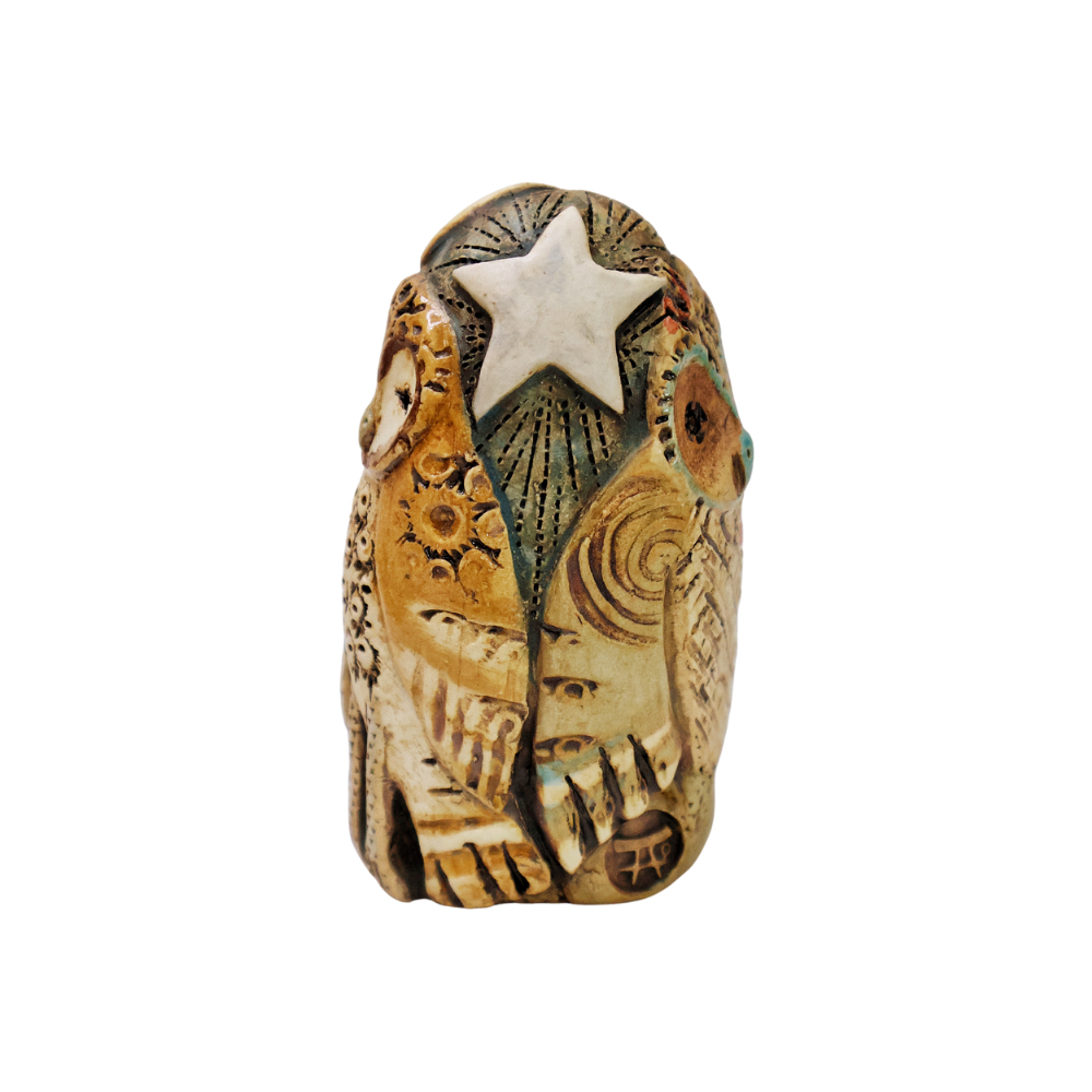 Clay sculpture featuring multiple owls by Terry Ostovar.