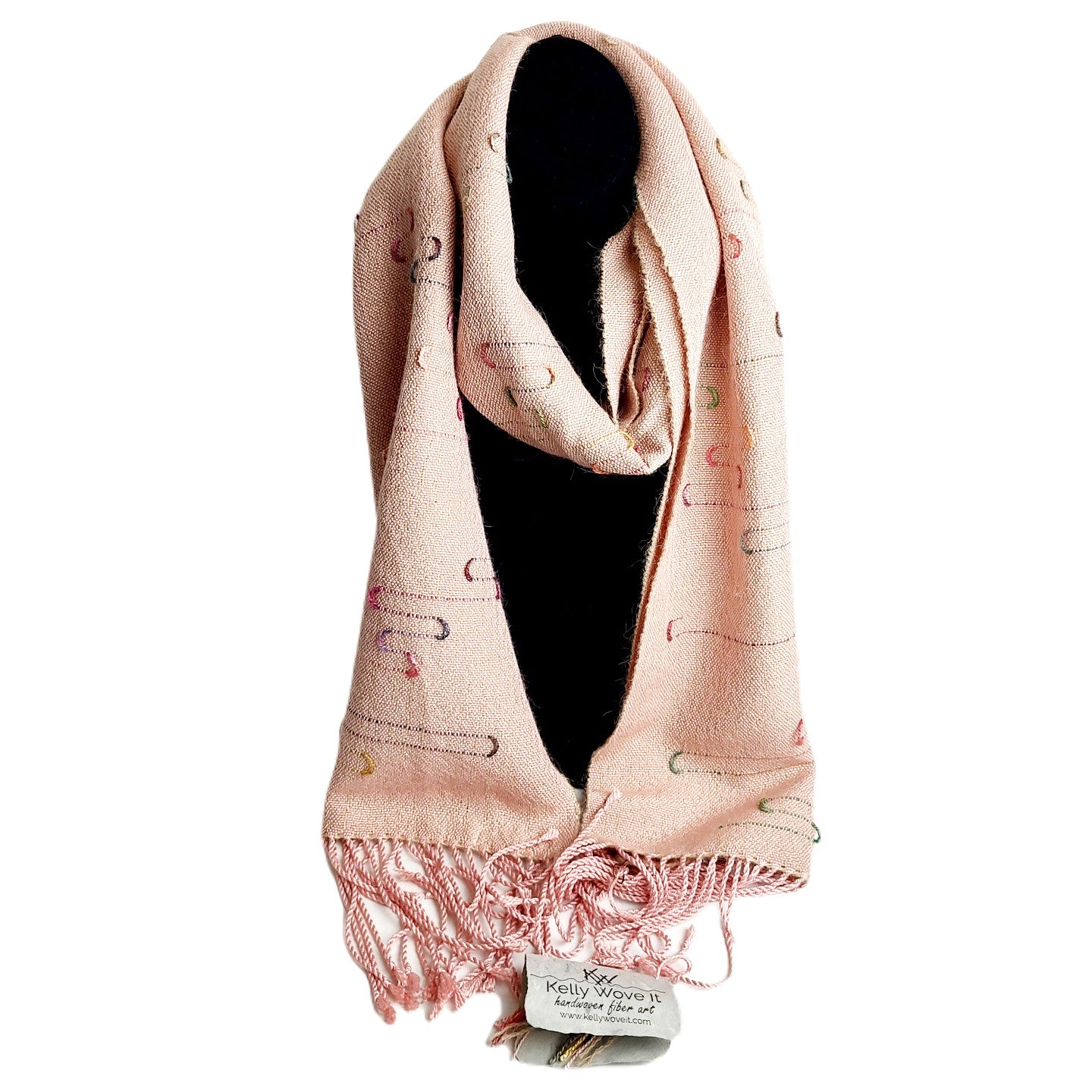 Squiggle Scarf. Khaki Rose handcrafted by Exhibiting Artist in Fiber, Kelly Walsh.