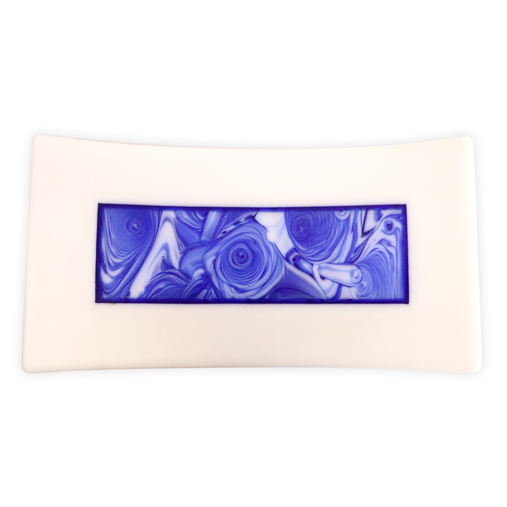 "Summer of Jaws" fused glass platter. 10.25" x 6.5" x 1.5"