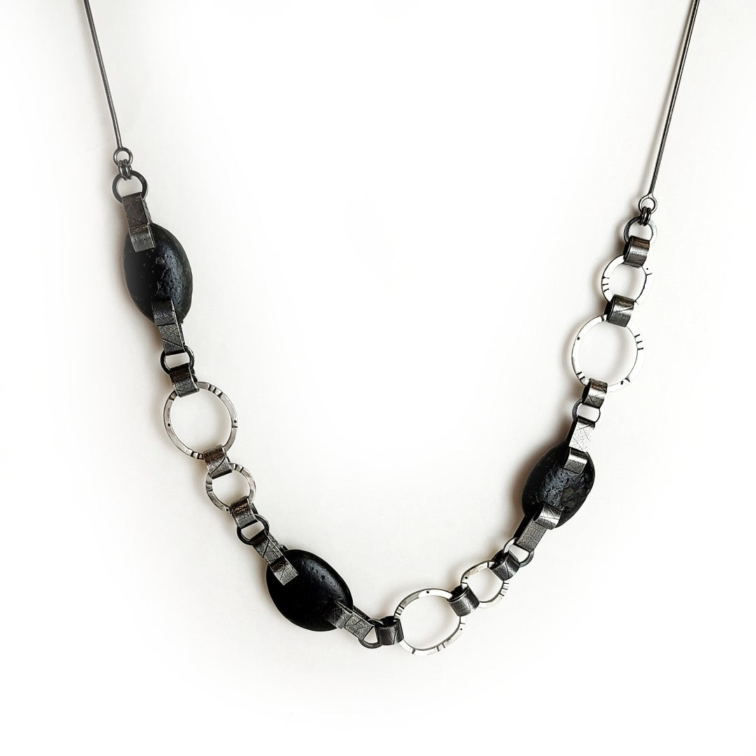 Stonewear triple stone statement necklace handcrafted by Exhibiting Artist in Jewelry, Kim Thompson