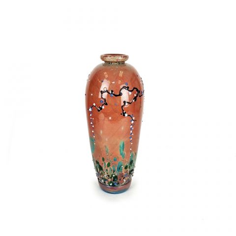 John Nygren is a senior member of the North Carolina glass art community and a renowned American master. Throughout his 40 year career, love of nature and the environment have been persistent themes. His glass works range from landscape vessels, classic vase forms with delicately wrought natural elements, to whimsical frogs. His work has been shown in more than 350 exhibitions throughout the world. Collections that feature his work include the Asheville Art Museum, the Sheldon Memorial Art Gallery and Sculpture Garden, the R.J. Reynolds Collection, the Corning Museum of Glass, The Mint Museums and the Smithsonian Institution.