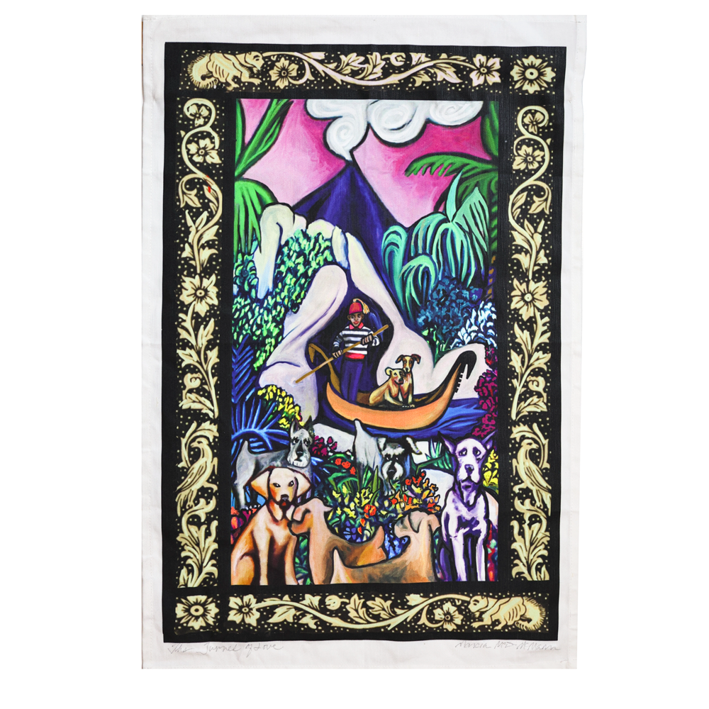 Oil pastel, printmaking & digital drawing on cotton/Linen. 16"W x 24"H