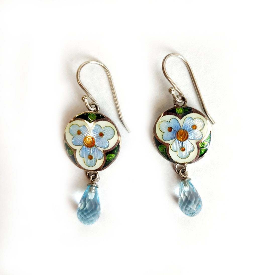 Trefoil Babyblue Earrings handcrafted champleve enamel by Exhibiting Artist in Jewelry, Sandra McEwen.