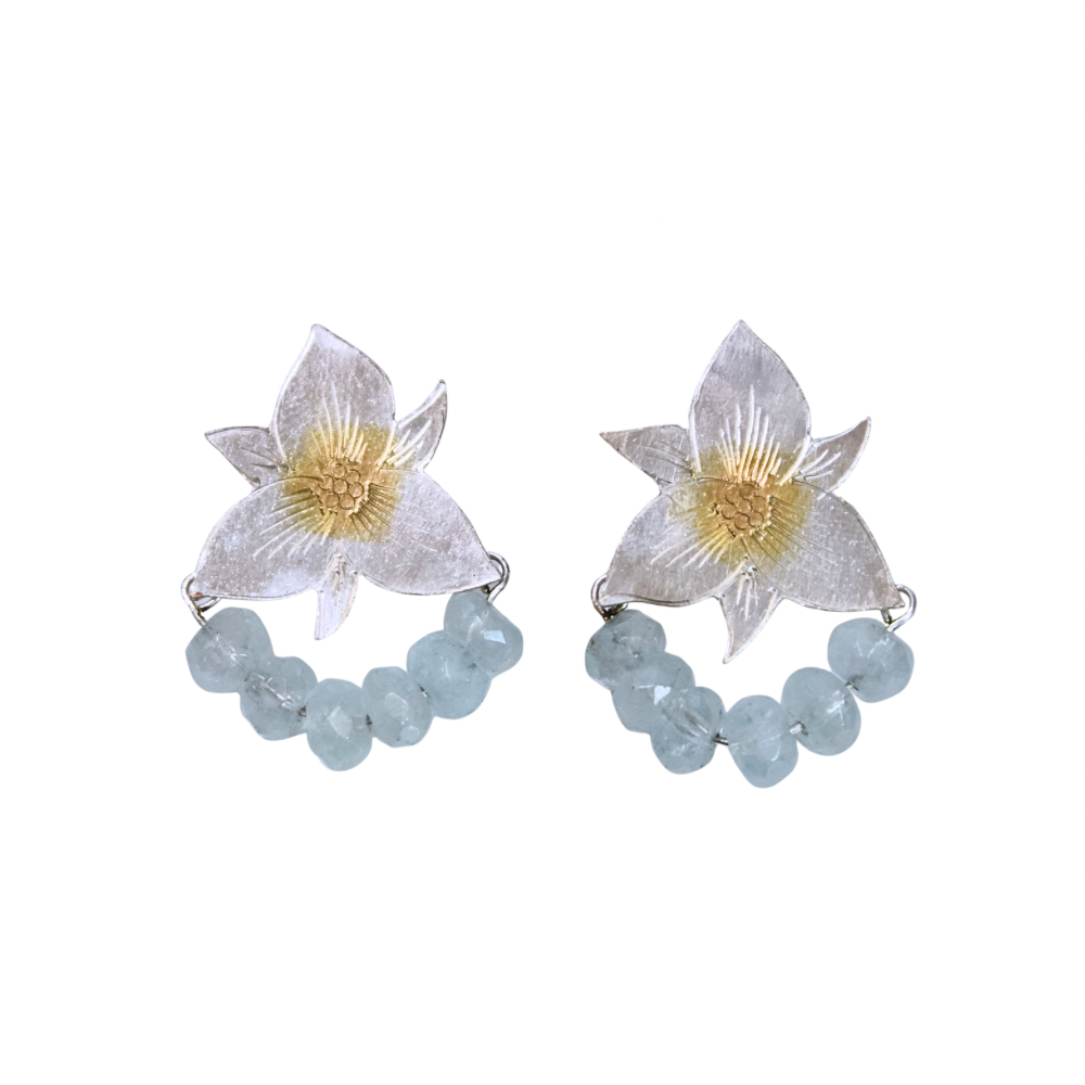 HYT006: Engraving: Trillium with aquamarine post earrings.