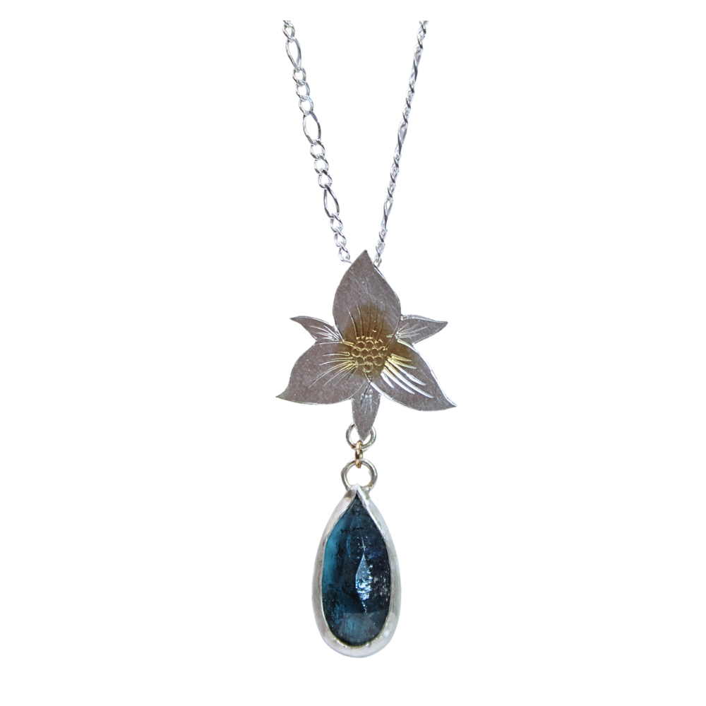HYT008: Engraving: Trillium with Moss Kynite necklace.